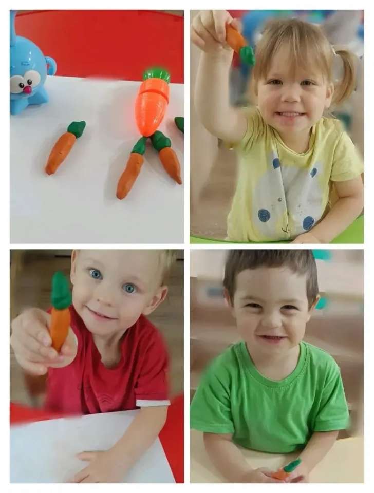 Дети учились раскатывать колбаски из пластилина, соединять пластилиновые детали путем придавливания. Дети с удовольствием лепили морковки, радовались своим творческим успехам.