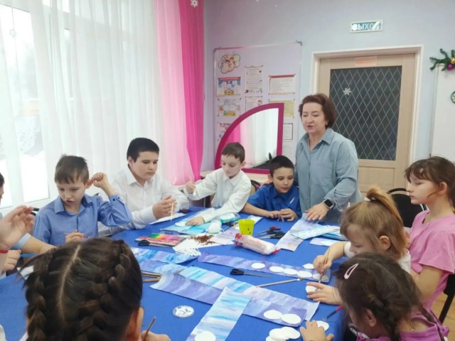 Дети не просто клеили аппликации - они создавали персонажа. Сначала каждый написал свое имя на ватном диске, чтобы снеговик стал по-настоящему личным. А потом началось самое интересное - придумывание характера! Один получился задорным и смеющимся, другой - задумчивым, третий - удивленным.